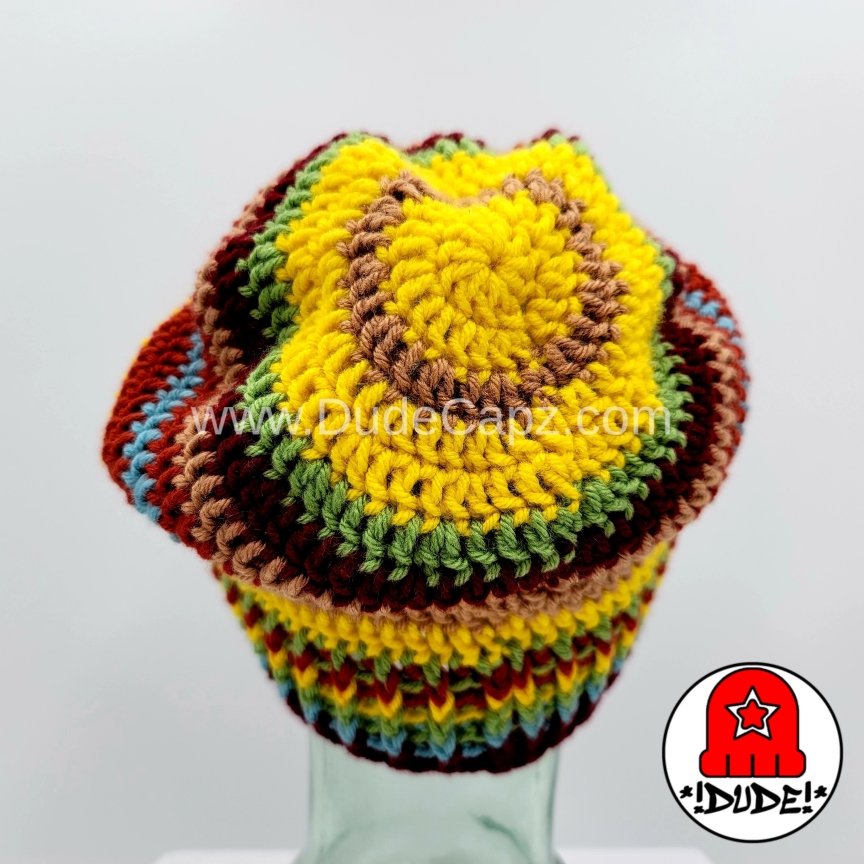 For men (or women, kids, & teenagers). This crocheted slouchy beanie with ribbed brim is made in Hot Yellow, Mid Green, Black Cherry, Toasted Almond, Blue Moon, and Terra Cotta colors. One size fits all. Handmade. This is the only beanie of this style available in these colors. Made from 100% easy care soft acrylic yarn. Gentle handwashing and rinsing recommended, roll in a towel to remove excess water, and lay flat to dry. Buy now if you like this one. I have no plans to recreate this original item, and once it’s sold, it gone for good.