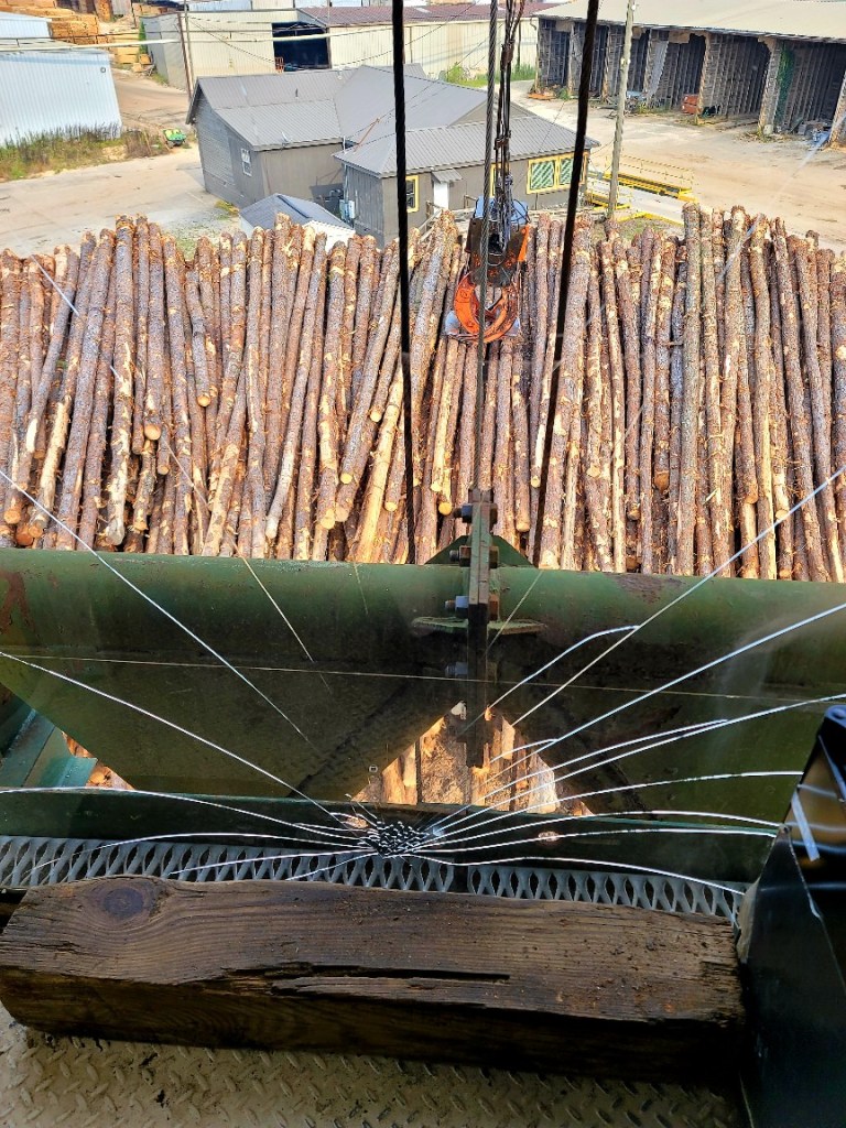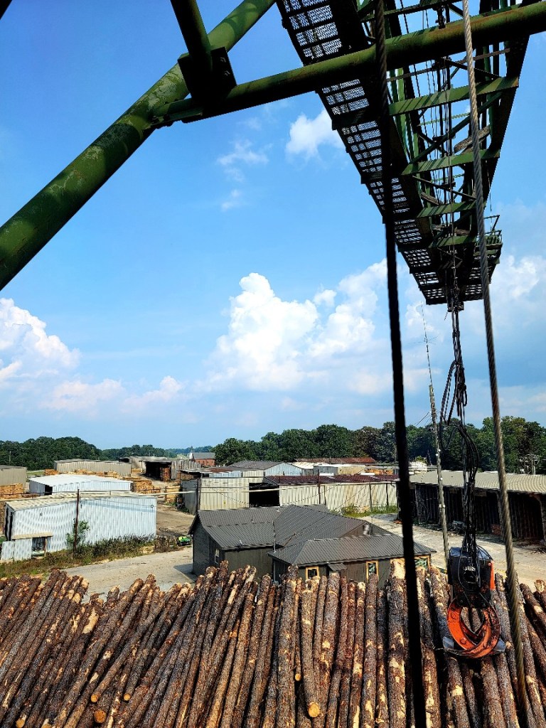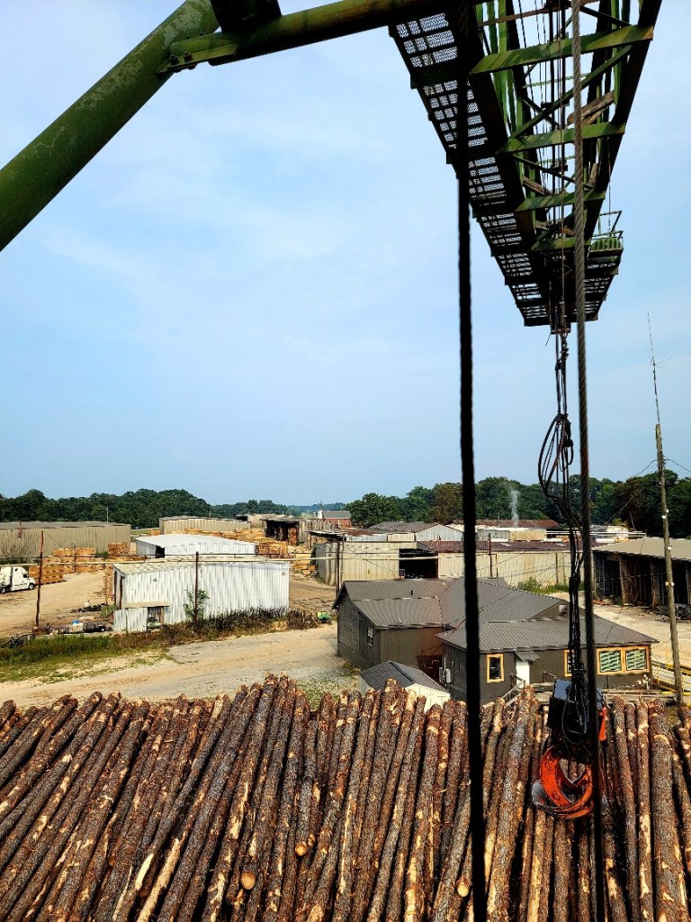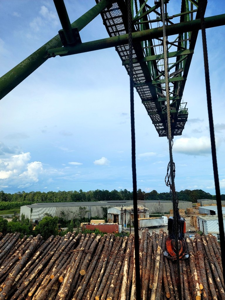 I have an awesome job as a fire gaurd at a sawmill in Alabama. I often use the crane as a lookout point to view the property. It serves as my “watch tower” of sorts and here’s a little secret… I often get a lot of my crochet work done while sitting in the cab. Another secret… I am scared of heights, but I deal with it for these views.
