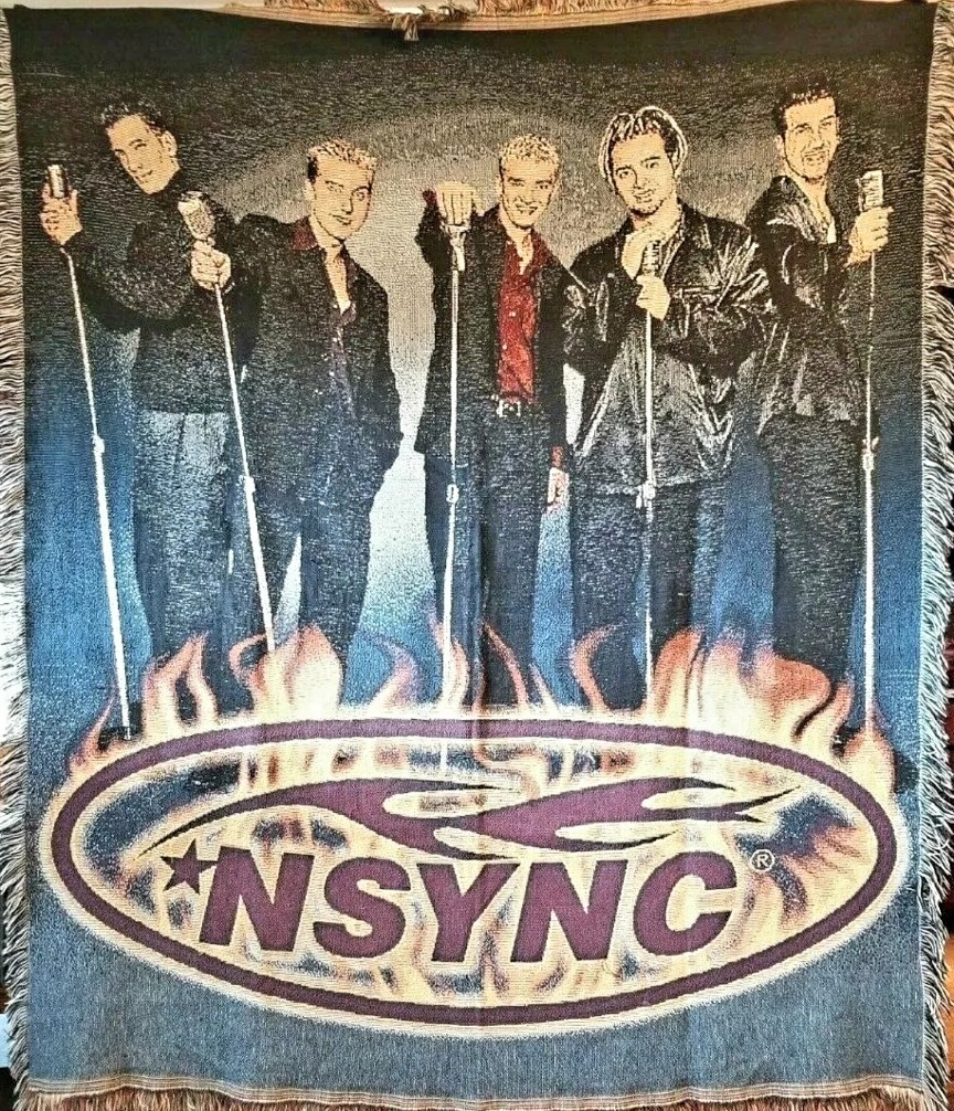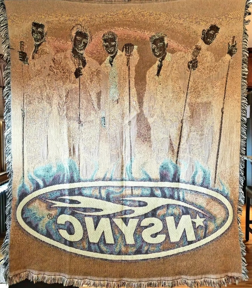 In this post I found this NSYNC woven tapestry style throw blanket. See photos below.