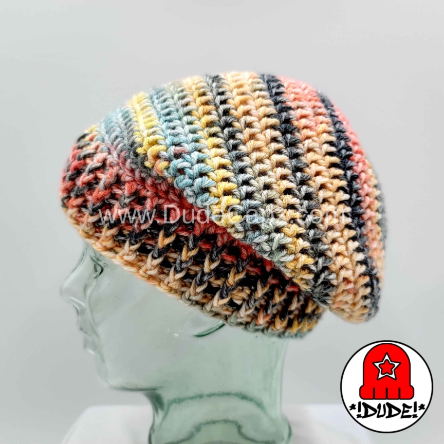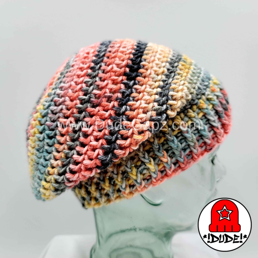 For women. City Beat colorway crocheted slouchy beanie with ribbed brim. One size fits all. Handmade. This is the only beanie of this style available in this colorway. Made from 100% easy care soft acrylic yarn. CLEANING INSTRUCTIONS: Gentle handwashing and rinsing recommended, roll in a towel to remove excess water, and lay flat to dry. Buy now if you like this one. This is the only one I will ever make in this colorway for this style. Once it’s gone, it’s gone.